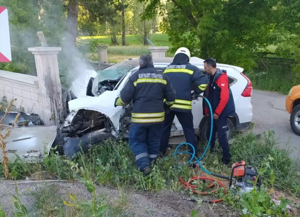 Bayburt- Erzurum yolunun Gümüşsu köyü Hanları mevkisinde E.Ş. idaresindeki 69 AAG plakalı cip, şoförünün direksiyon hakimiyetini kaybetmesi sonucu istinat duvarına çarptı.
