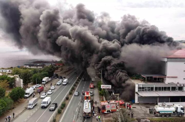 Trabzon'un Akçaabat ilçesinde bir alışveriş merkezinde çıkan yangın sırasında meydana gelen patlamalarla ilgili görgü...