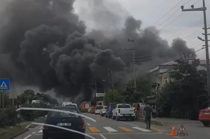 Trabzon'un Akçaabat ilçesinde hırdavat ve yapı materyali satışı yapılan bir alışveriş merkezinde çıkan yangının...
