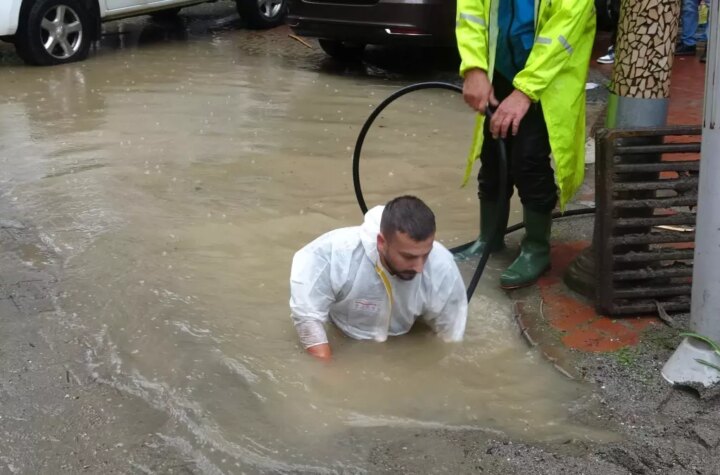 Trabzon'un Sürmene ilçesinde tesirli olan sağanak yağış, cadde ve sokaklarda su taşkınlarına neden oldu....