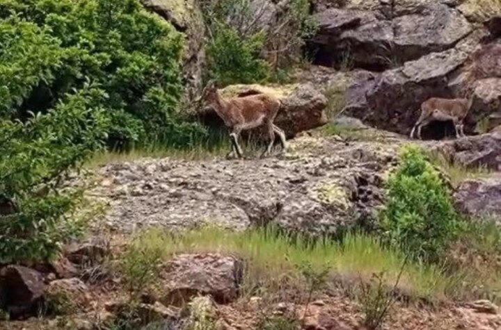 Bayburt'ta yaşayan İhsan Karaaslan, Üzengili köyü yakınlarında yolda karşılaştığı dağ keçilerini cep telefonuyla kaydederken,...