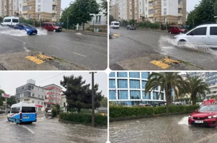 Trabzon kent merkezinde sabah saatlerinden itibaren tesirli olan şiddetli yağış nedeniyle yollar sular altında...