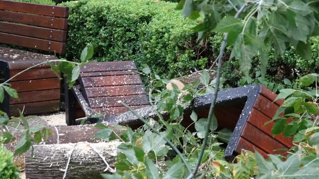 TRABZON’da tesirli olan kuvvetli rüzgar nedeniyle Meydan Parkı’ndaki bankların üzerine ağaç devrildi. Takımlar, ağacı kesip kaldırırken, parktaki bankların kırıldığı tespit edildi.